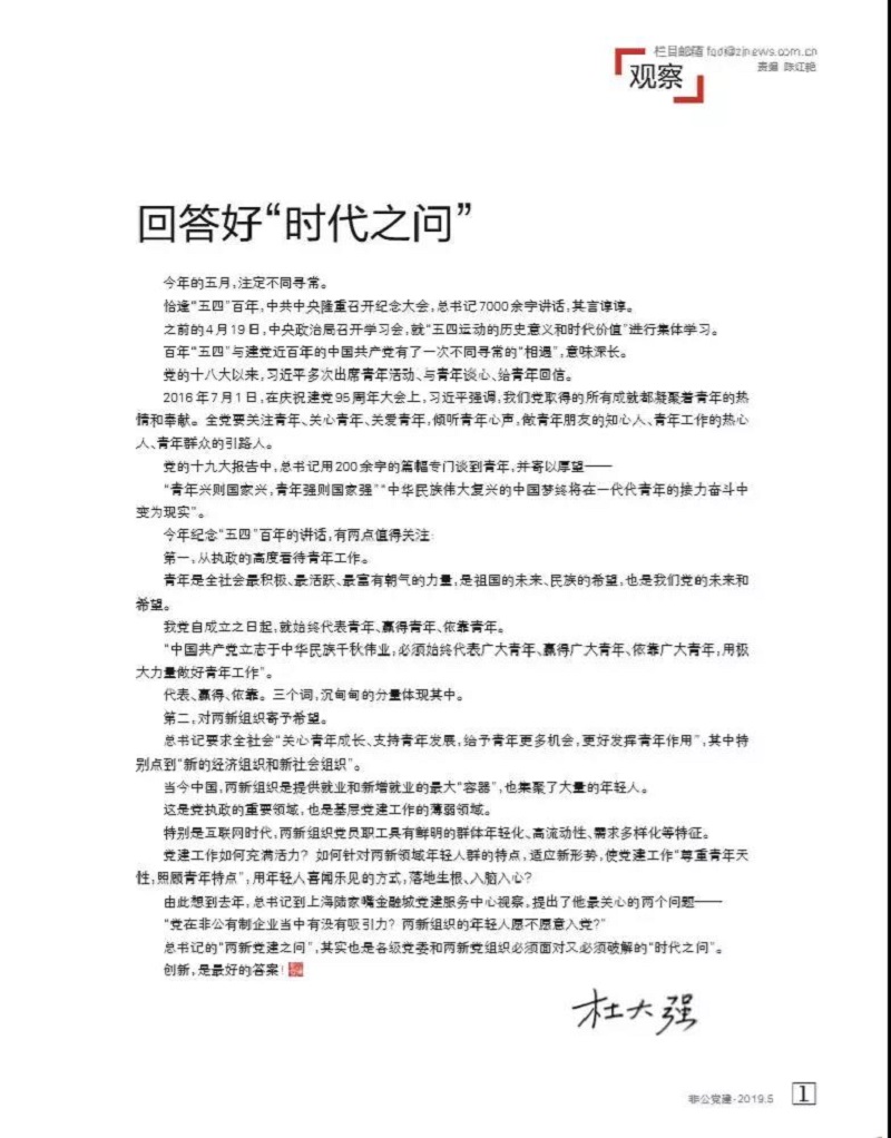 今年紀(jì)念“五四”百年的講話,有兩點(diǎn)值得關(guān)注: