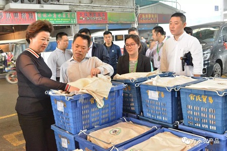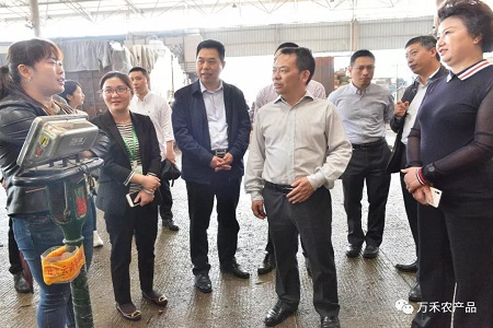 (桂林市政府副市長(zhǎng)黃加才一行領(lǐng)導(dǎo)與萬禾副總經(jīng)理李小濱在市場(chǎng)走訪調(diào)查)