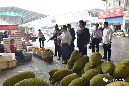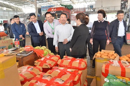 4月19日上午,桂林市政府副市長(zhǎng)黃加才在桂林市政府副秘書長(zhǎng)馬建鋒、桂林市商務(wù)局局長(zhǎng)王昕等領(lǐng)導(dǎo)的陪同下蒞臨五里店果蔬批發(fā)市場(chǎng),就掃黑除惡工作開展情況進(jìn)行調(diào)研。萬禾農(nóng)產(chǎn)品有限公司副總經(jīng)理、萬禾市場(chǎng)管理有限公司董事長(zhǎng)李小濱率相關(guān)部門負(fù)責(zé)人進(jìn)行接待,并對(duì)桂林市政府副市長(zhǎng)黃加才一行領(lǐng)導(dǎo)的蒞臨表示熱烈的歡迎。
