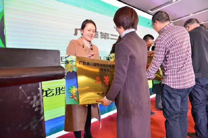 2019年12月5日,在廣西第二屆“桂林桂花茶”發(fā)展峰會(huì)上,廣西萬禾茶業(yè)的“萬禾幽香一號(hào)(特制金桂銀毫)”“萬禾幽香二號(hào)(金桂銀毫)”兩款桂花茶,榮獲桂林市第二屆“桂林桂花茶”茶王爭(zhēng)霸賽的一等獎(jiǎng)和三等獎(jiǎng)。