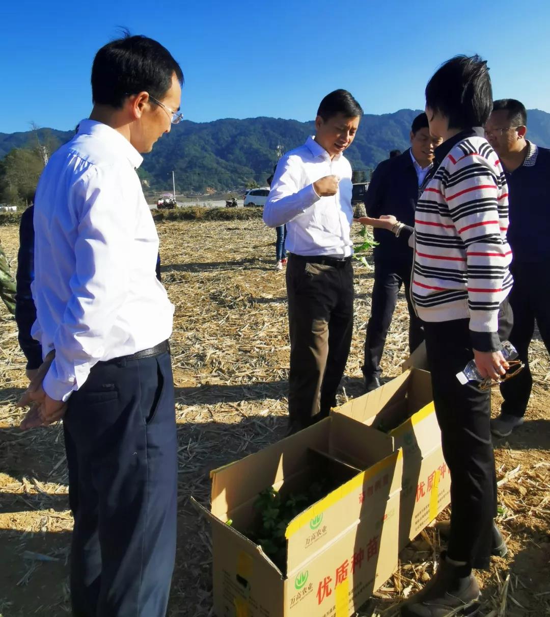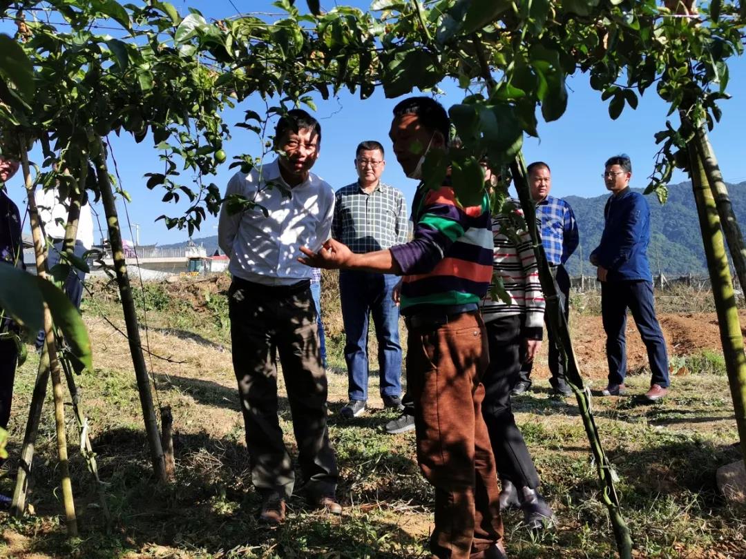 ▲衛(wèi)州長一行領(lǐng)導(dǎo)了解萬禾百香果種苗情況