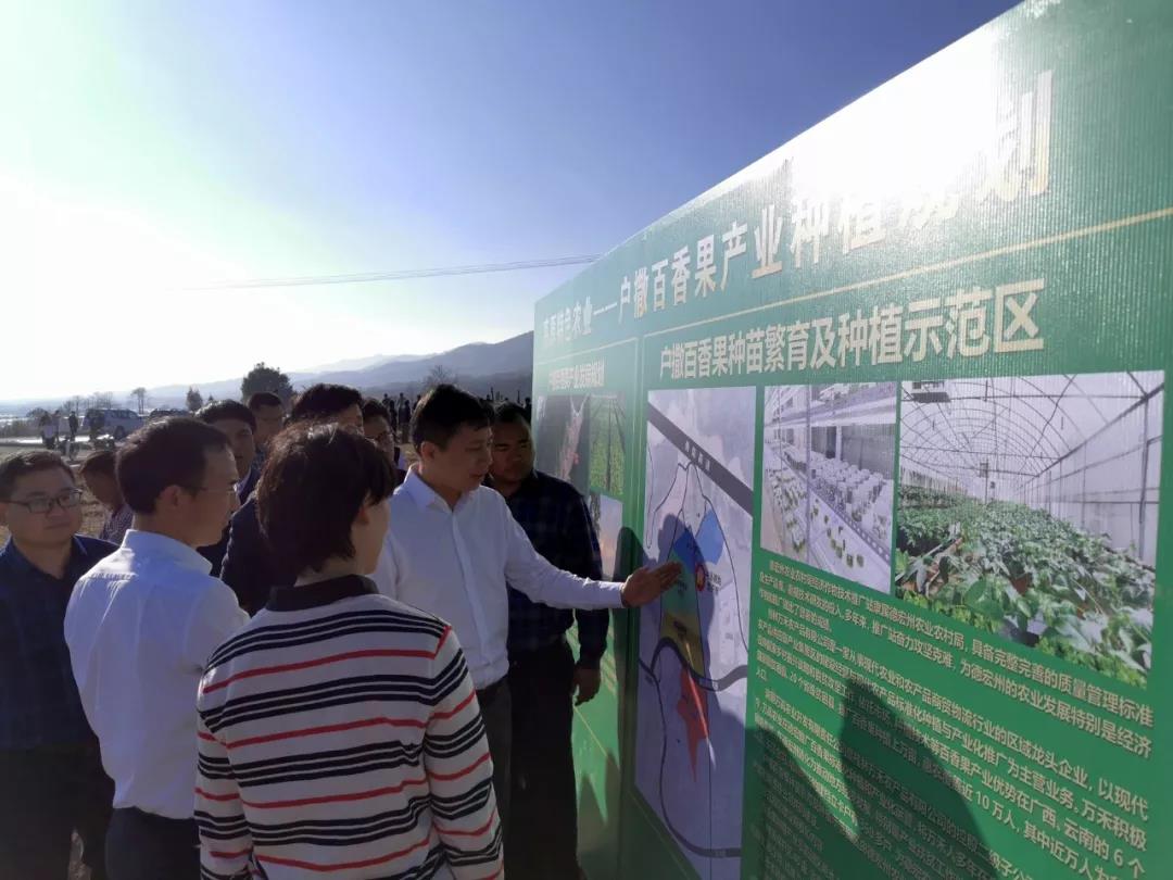 1月17日下午,德宏州人民政府州長衛(wèi)崗、州人民政府副州長李正環(huán)一行在德宏州農(nóng)業(yè)農(nóng)村局局長閆信淮、隴川縣縣長鄭洪云等相關(guān)部門領(lǐng)導(dǎo)的陪同下蒞臨隴川縣戶撒鄉(xiāng)調(diào)研萬禾百香果產(chǎn)業(yè)扶貧工作。桂林萬禾農(nóng)產(chǎn)品有限公司總經(jīng)理崔萌佳、公司運營副總監(jiān)陽定中全程陪同并作詳細(xì)匯報。
