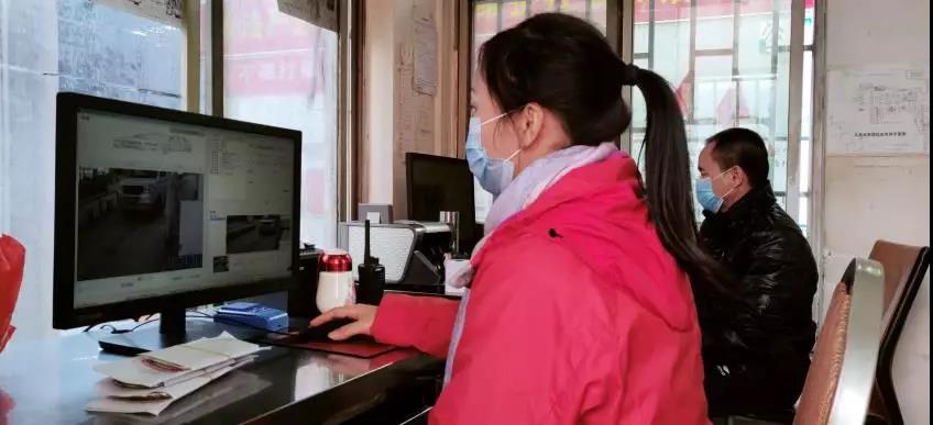 ▲市場門崗工作人員佩戴口罩進(jìn)行工作