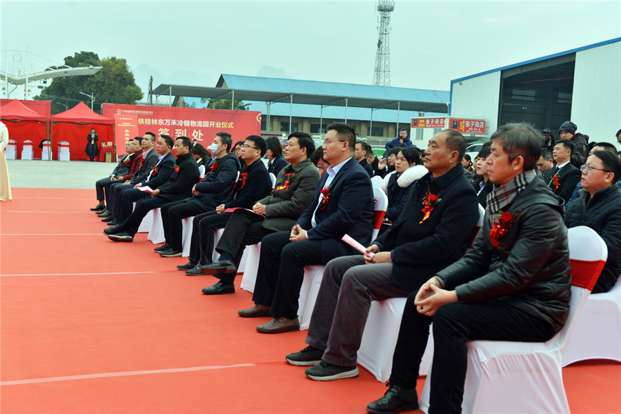 12月22日上午,伴隨著禮花綻放,寧鐵桂林東萬禾冷鏈物流園迎來了盛大的開業(yè)慶典,桂林市政府副市長鐘洪,中國鐵路南寧局集團(tuán)有限公司總會計師趙山,桂林市委組織部副部長、市兩新黨工委書記、市公務(wù)員局局長、桂林兩新黨建紅色學(xué)院院長林兵,桂林市商務(wù)局局長王昕,桂林國家高新區(qū)管委會副主任伍傳仁,桂林市七星區(qū)政府副區(qū)長陽明,桂林市發(fā)展和改革委員會副主任徐寧,廣西寧鐵物資工業(yè)有限公司黨委書記、董事長石小東等領(lǐng)導(dǎo)出席活動,以及中國郵政儲蓄銀行桂林分行、聚慧集團(tuán)等合作單位領(lǐng)導(dǎo)到場一同見證寧鐵桂林東萬禾冷鏈物流園的盛大開業(yè),現(xiàn)場人流如織,賓朋滿座。