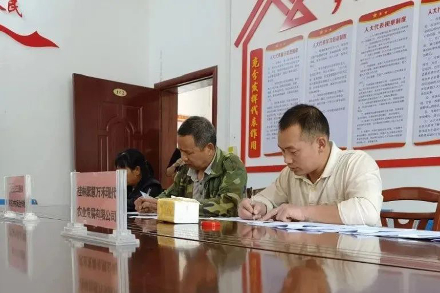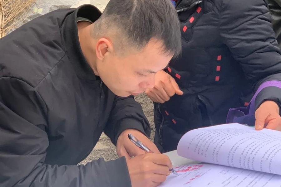 ▲與農(nóng)戶簽訂租地協(xié)議