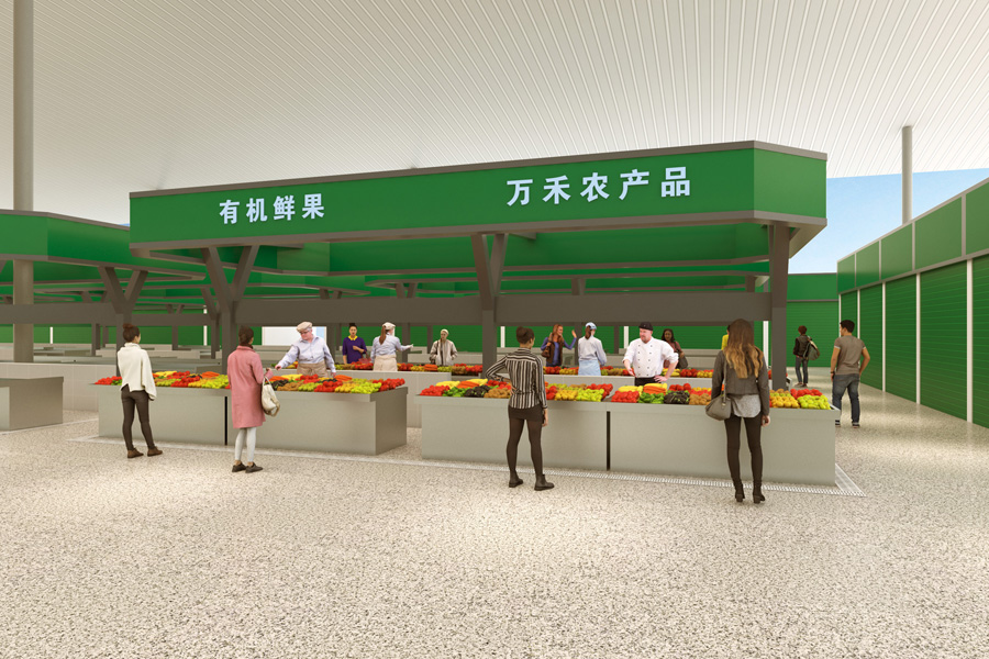 為解決周邊流動(dòng)攤販的經(jīng)營問題,市場設(shè)立大型集市 區(qū)、夜市區(qū)及餐飲區(qū),規(guī)劃近千商位,可安置過千個(gè) 就業(yè)崗位,為服務(wù)區(qū)內(nèi)的城市配送公司提供一站式采 購平臺。