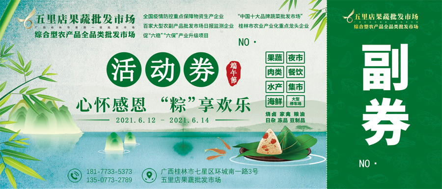 在端午節(jié)即將來臨之際,五里店果蔬批發(fā)市場還將舉辦端午節(jié)——心懷感恩,“粽”享歡樂主題活動(dòng),和大家共度一個(gè)綠色、快樂的端午假期。