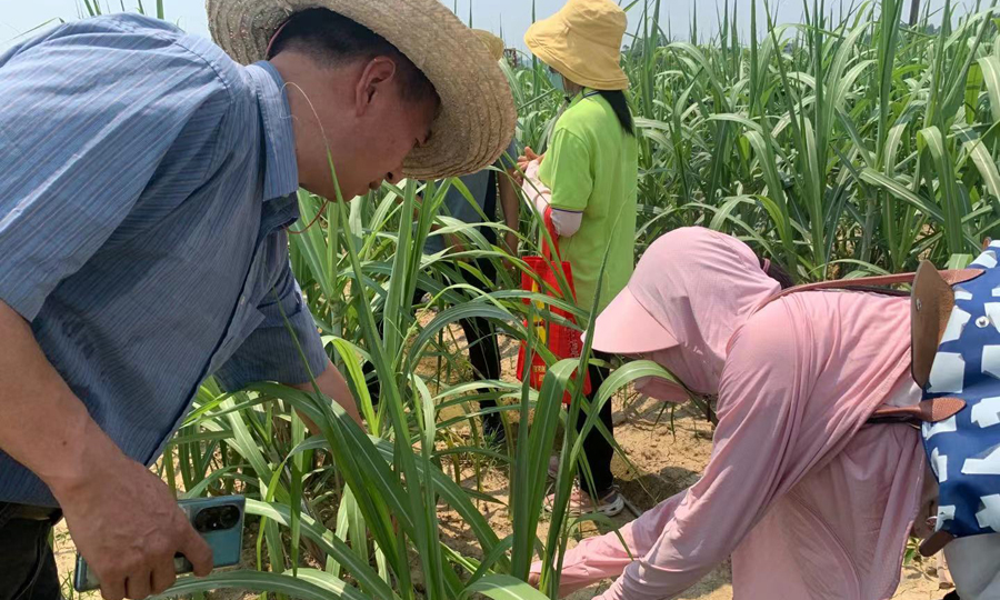 在交流過程中,專家們與公司技術人員和農(nóng)戶一同查看種植甘蔗的葉片和芽頭受到的不同程度病蟲害影響,著重強調(diào)甘蔗的病蟲害問題,指出甘蔗病蟲害不僅影響甘蔗的正常生長,更會影響成品甘蔗的品像。專家們現(xiàn)場手把手傳授了查看病蟲害的要領和防治病蟲害的時機和方法。