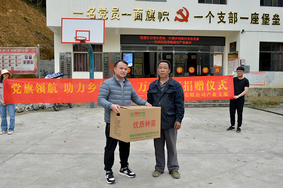 3月10日,中共萬禾農(nóng)產(chǎn)品有限公司產(chǎn)業(yè)支部攜手桂林聚慧萬禾現(xiàn)代農(nóng)業(yè)發(fā)展有限公司前往資源縣河口瑤族鄉(xiāng)猴背村開展“黨旗領(lǐng)航 助力鄉(xiāng)村振興”為主題的百香果種苗捐贈活動。