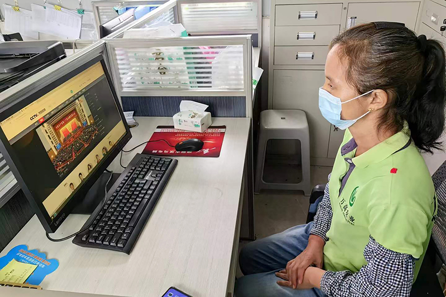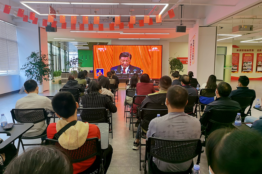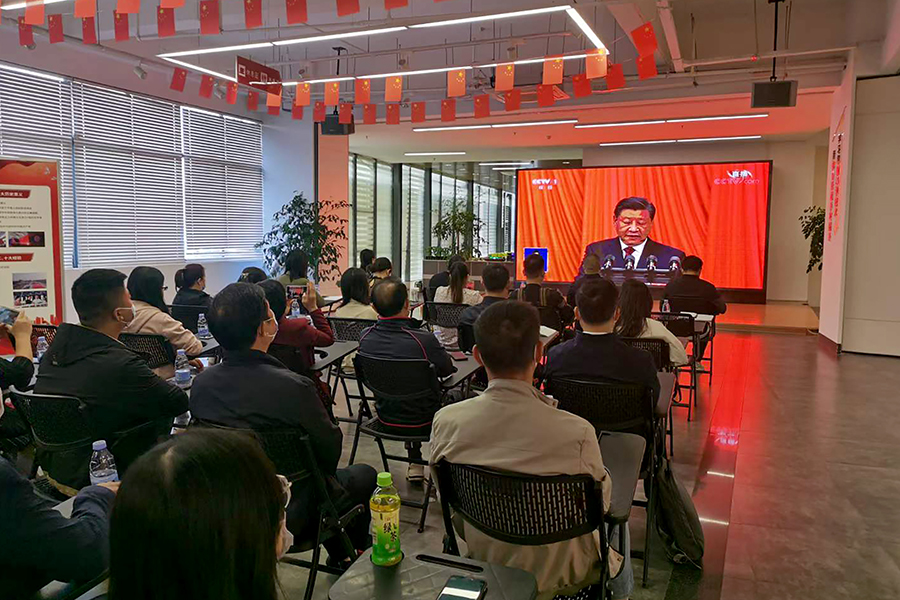 ▲萬禾集團黨總支組織人員觀看二十大開幕會