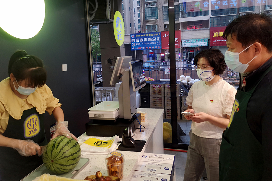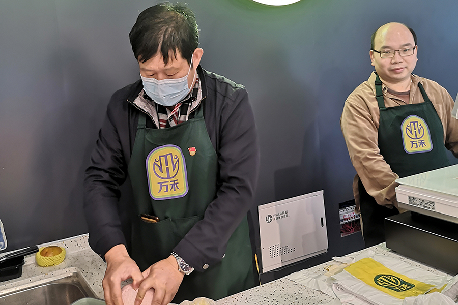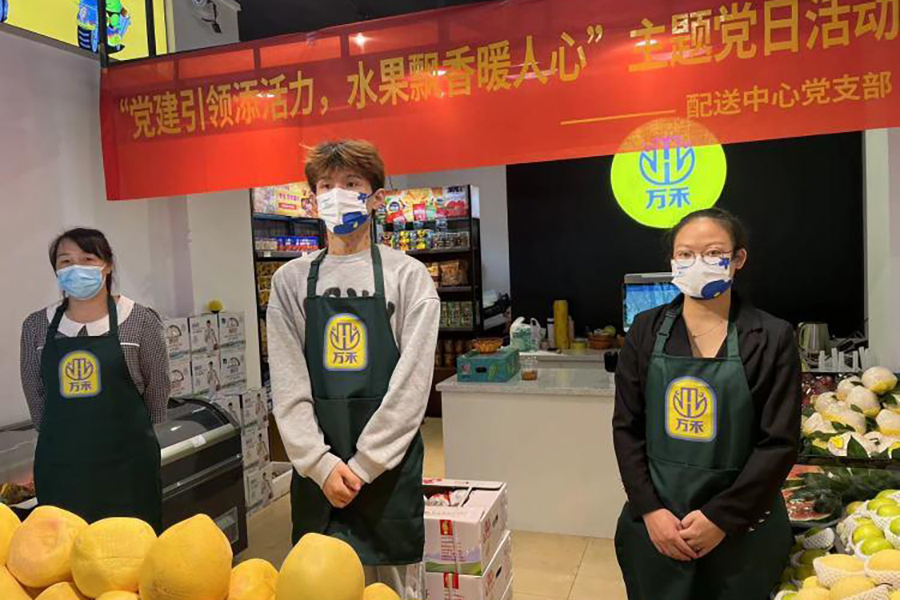 通過黨員現(xiàn)場服務(wù)顧客、切瓜果擺盤等手把手示范工作,提升員工服務(wù)認(rèn)同感與主動性,以黨建引領(lǐng),規(guī)范服務(wù),進(jìn)一步提升員工現(xiàn)場服務(wù)水平,讓顧客感受到更有溫度、更有鮮度的服務(wù)。
