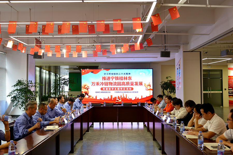 為深入學(xué)習(xí)貫徹落實(shí)黨的二十大會(huì)議精神,加強(qiáng)廣西寧鐵物資工業(yè)有限公司桂林分公司、萬禾集團(tuán)間的溝通和交流,推進(jìn)寧鐵桂林東萬禾冷鏈物流園高質(zhì)量發(fā)展。11月11日下午,萬禾集團(tuán)黨總支和廣西寧鐵物資工業(yè)有限公司桂林分公司黨支部在萬禾集團(tuán)黨建活動(dòng)中心開展“學(xué)習(xí)二十大,推進(jìn)寧鐵桂林東萬禾冷鏈物流園高質(zhì)量發(fā)展”黨建聯(lián)學(xué)主題黨日活動(dòng)。