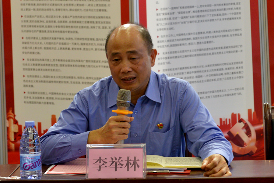 廣西寧鐵物資工業(yè)有限公司桂林分公司黨支部書記李舉林就黨的二十大會(huì)議中提到新時(shí)代新征程中國共產(chǎn)黨的使命任務(wù);推進(jìn)國家安全體系和能力現(xiàn)代化,堅(jiān)決維護(hù)國家安全和社會(huì)穩(wěn)定兩方面內(nèi)容,帶領(lǐng)大家學(xué)習(xí)黨的二十大會(huì)議精神。他強(qiáng)調(diào),黨的二十大為我們描繪了新的宏偉藍(lán)圖,我們要深刻領(lǐng)悟“兩個(gè)確立”的決定性意義,牢牢把握“三個(gè)務(wù)必”重要號(hào)召和“五個(gè)必由之路”規(guī)律性認(rèn)識(shí),進(jìn)一步增強(qiáng)“四個(gè)意識(shí)”、堅(jiān)定“四個(gè)自信”、做到“兩個(gè)維護(hù)”。