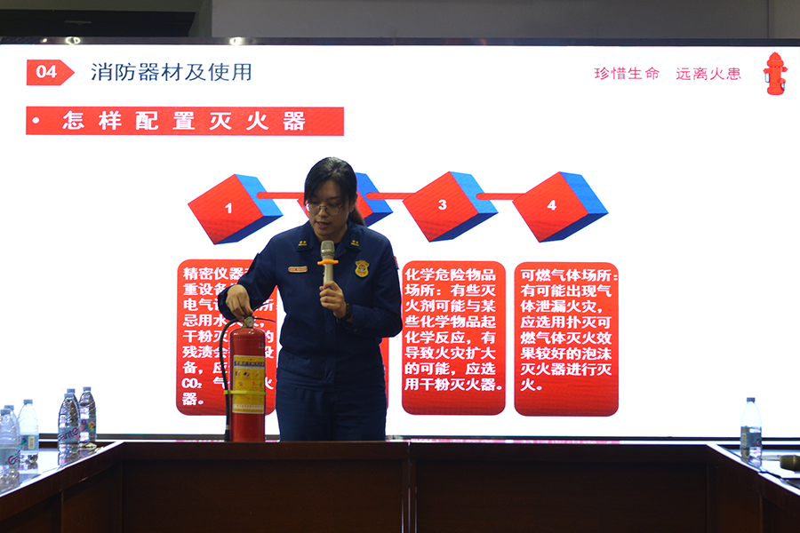 會(huì)后,還邀請(qǐng)到七星消防隊(duì)進(jìn)行了消防安全知識(shí)培訓(xùn)和演練,消防隊(duì)員通過詳細(xì)講解干粉滅火器的配置和使用方法、初期火災(zāi)的撲救方法以及火場自救逃生等相關(guān)知識(shí),并現(xiàn)場演練火場逃生技能,有效提高了廣大黨員干部的消防安全意識(shí)。