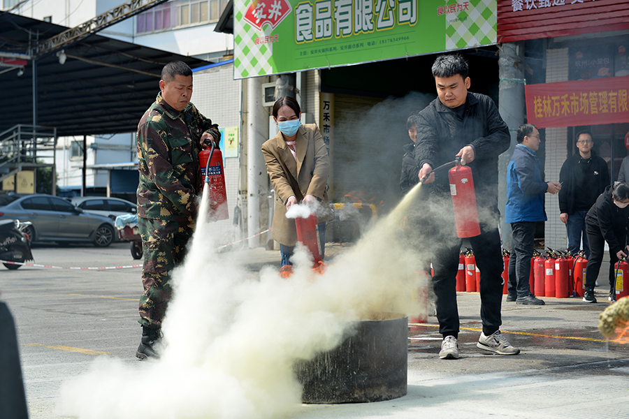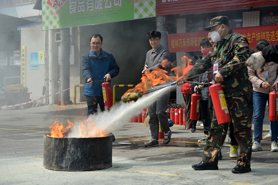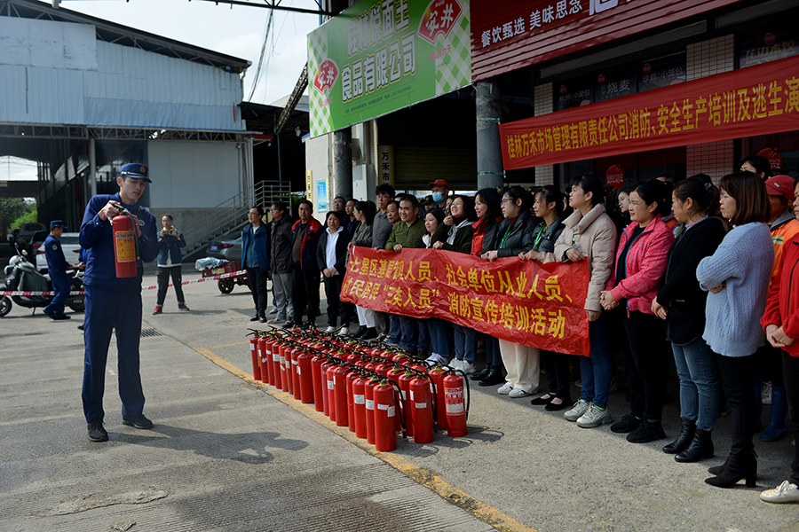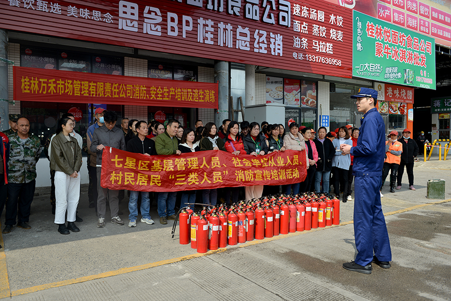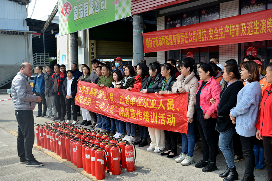 為增強(qiáng)黨員干部及市場經(jīng)營戶消防安全意識,有效掌握防火、滅火應(yīng)急處置能力,4月25日,萬禾集團(tuán)五里店市場支部組織黨員干部及市場經(jīng)營戶在五里店果蔬批發(fā)市場開展“增強(qiáng)消防意識,筑牢安全防線”主題黨日活動,桂林市七星消防隊?wèi)?yīng)邀到場進(jìn)行消防安全培訓(xùn)。