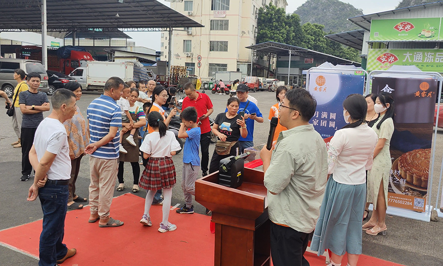 活動(dòng)現(xiàn)場(chǎng),萬禾集團(tuán)五里店市場(chǎng)支部聯(lián)合黃家月等月餅品牌商組織開展“168斤月餅王”嘗鮮為主題的系列活動(dòng),支部黨員干部、市場(chǎng)經(jīng)營戶代表以及市場(chǎng)各職能部門員工參加活動(dòng),與前來桂林五里店果蔬批發(fā)市場(chǎng)購物的市民同慶中秋國慶佳節(jié)來臨,共話團(tuán)圓美好。