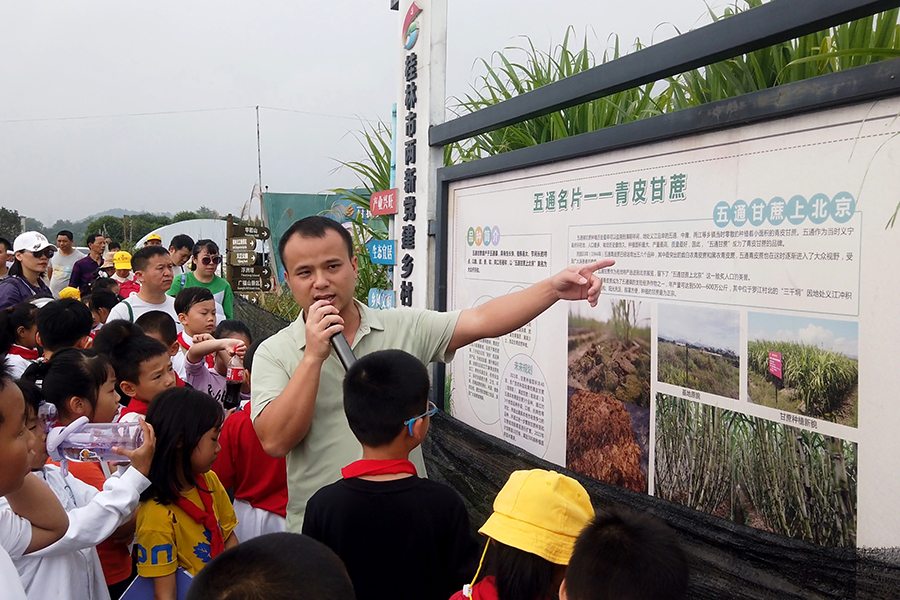 多彩深秋時節(jié),在充滿豐收氣息的桂林市兩新黨建鄉(xiāng)村振興五通示范基地,迎來了一群朝氣蓬勃的“勞動小達人”。11月4日,來自桂林市復(fù)興小學(xué)227班的近100位師生家長走進五通基地開展“勞動勵心智,實踐促成長”主題社會研學(xué)活動,全面了解五通基地的種植規(guī)劃建設(shè)、多元發(fā)展模式、主營業(yè)務(wù)成果、種植農(nóng)作物生長習(xí)性以及青皮甘蔗的歷史文化內(nèi)涵,更加真切、生動地感受國家推進鄉(xiāng)村振興發(fā)展的強勁脈動和蓬勃活力。