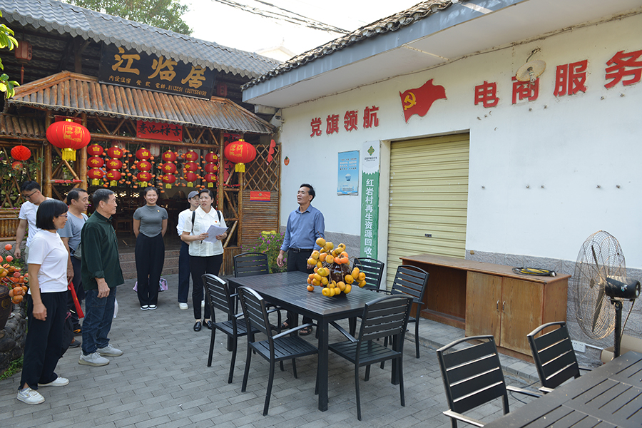 首先,全體黨員來到紅巖村“黨旗領航 電商服務”民宿點,認真聆聽了恭城紅巖村旅游協(xié)會會長、全國勞模、自治區(qū)第十一次黨代會代表朱建倫對紅巖村歷史文化和月柿特色農(nóng)產(chǎn)品發(fā)展模式進行講解,并與大家交流分享如何發(fā)展生態(tài)農(nóng)業(yè)旅游和鄉(xiāng)村振興示范村的建設情況及經(jīng)驗做法。